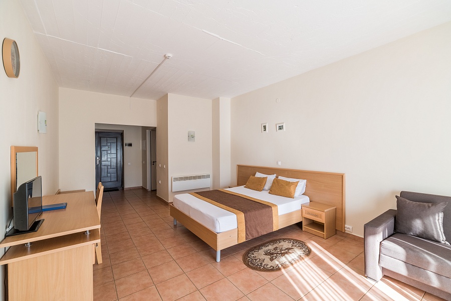 - Оборудование: кондиционер, мини-холодильник, телевизор ЖК, чайный набор посуды, электрочайник